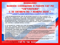 !!Внимание! !Важное сообщение о работе ГАУ РО "СШ "Елатьма"